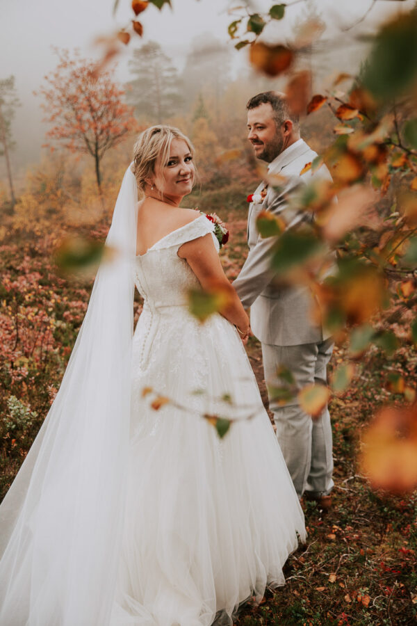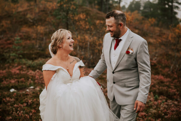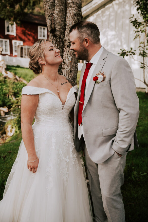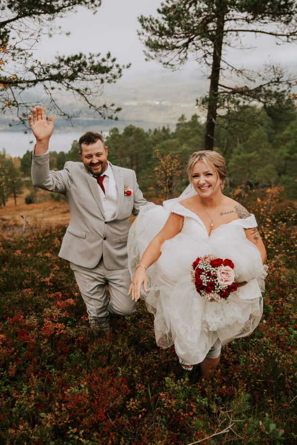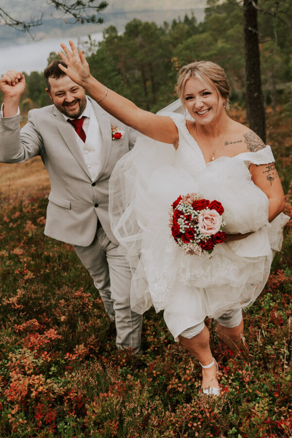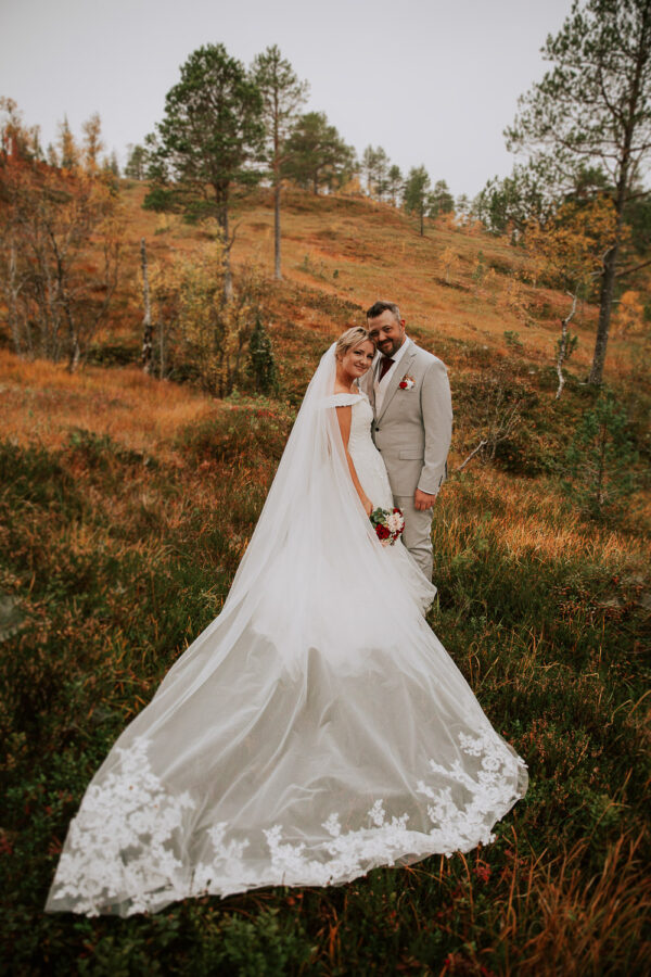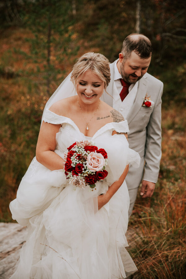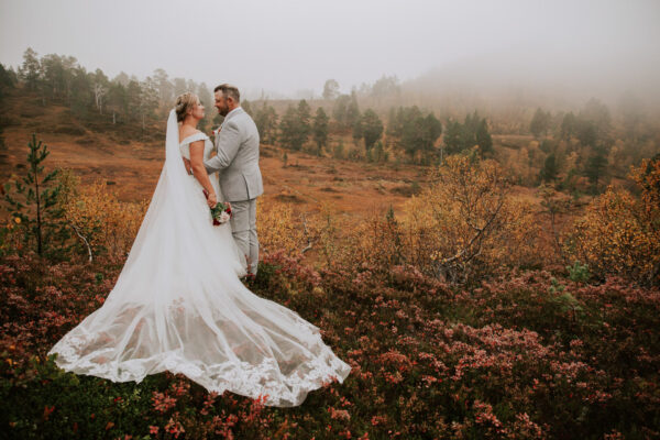 «Altså – jeg vet ikke engang hvor jeg skal starte. Martine er virkelig fantastisk! Har fulgt hennes arbeid i 13 år, og var ikke i tvil om at det var hun som skulle forevige bryllupet vårt. Vi valgte Heldags Luksus til vårt bryllup 21.09.24. Vi er SÅ glade for det! Vi byttet ut forlovelses-/boudoirfotografering med bryllupsfotografering før bryllupet. Martine spente skoene på og ble med på fjelltur etter vårt ønske. Og bildene? De ble helt fabelaktige! Og ikke minst – vi fikk hele galleriet i farger og svart/hvitt bare få timer etter shooten. Våre gjester kommenterte Martines behagelige vesen – og til og med de som til vanlig er veldig ukomfortable foran kamera smilte bredt og poserte for henne. Hun skled rett inn i bryllupsfeiringen som hvilken som helst gjest – og det hele føltes veldig naturlig. Vi hadde valgt Martine igjen og igjen.»