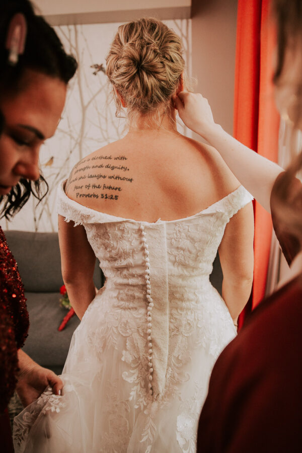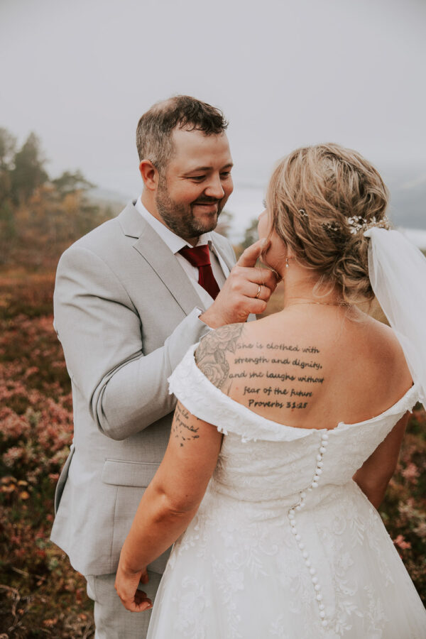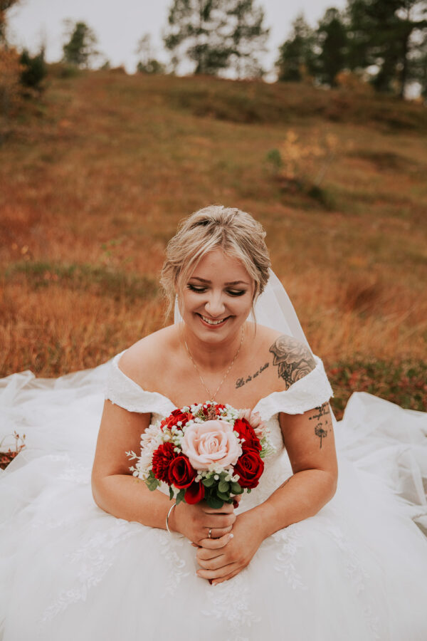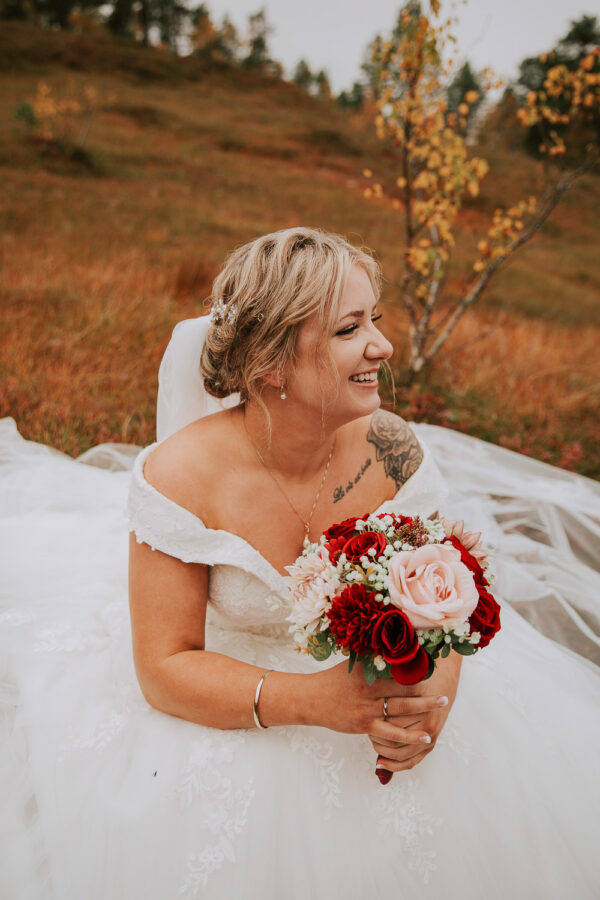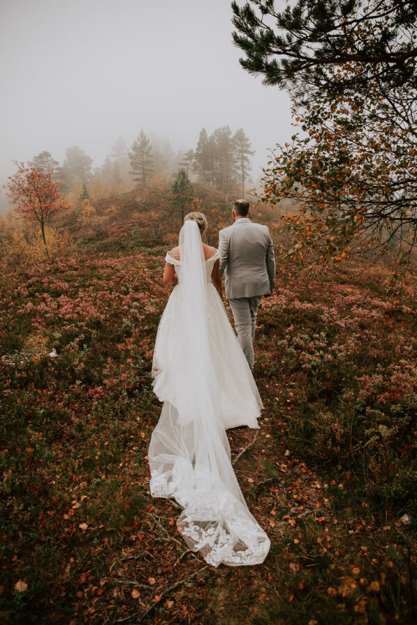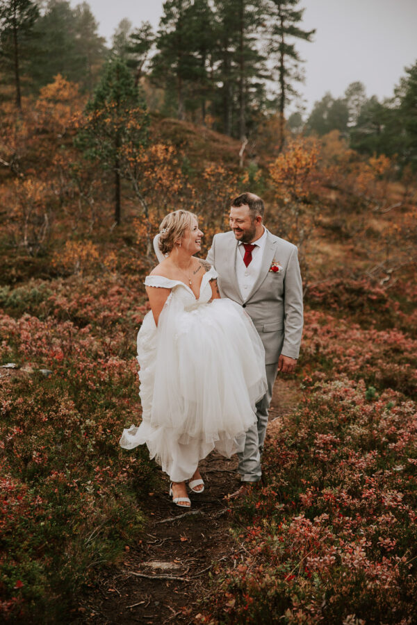 «Altså – jeg vet ikke engang hvor jeg skal starte. Martine er virkelig fantastisk! Har fulgt hennes arbeid i 13 år, og var ikke i tvil om at det var hun som skulle forevige bryllupet vårt. Vi valgte Heldags Luksus til vårt bryllup 21.09.24. Vi er SÅ glade for det! Vi byttet ut forlovelses-/boudoirfotografering med bryllupsfotografering før bryllupet. Martine spente skoene på og ble med på fjelltur etter vårt ønske. Og bildene? De ble helt fabelaktige! Og ikke minst – vi fikk hele galleriet i farger og svart/hvitt bare få timer etter shooten. Våre gjester kommenterte Martines behagelige vesen – og til og med de som til vanlig er veldig ukomfortable foran kamera smilte bredt og poserte for henne. Hun skled rett inn i bryllupsfeiringen som hvilken som helst gjest – og det hele føltes veldig naturlig. Vi hadde valgt Martine igjen og igjen.»