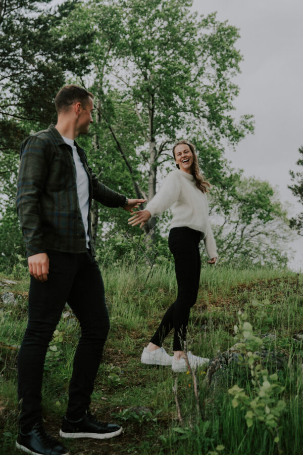 Utenom selve bildene er vi også fornøyd med totalpakken. Vi har fra starten hatt en oversiktlig kommunikasjon hvor vi har fått den informasjonen vi trengte. Møtene og fotograferingen vi hadde i forkant var også positive opplevelser, og som bidro til å gjøre oss bedre kjent med fotografen før selve bryllupsdagen. På selve dagen var Martine eksemplarisk. Hun kom godt overens og integrerte seg naturlig inn med de andre gjestene. Da vi fikk bildene oppdaga vi at hun hadde tatt mange sterke øyeblikksbilder der vi ikke hadde merket at hun var der. Vi er glade for at vi valgte Martine som hjalp oss med å forevige den fantastiske dagen for oss.»