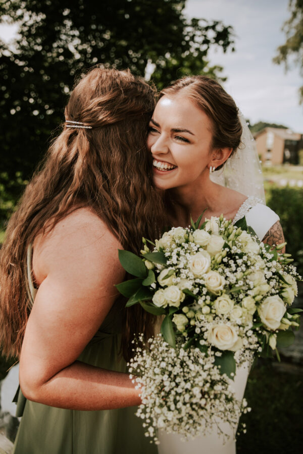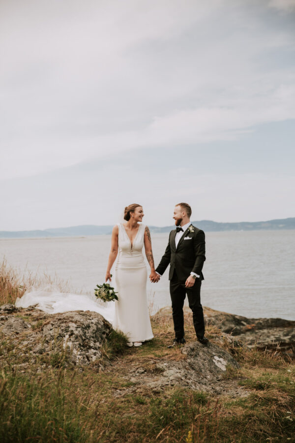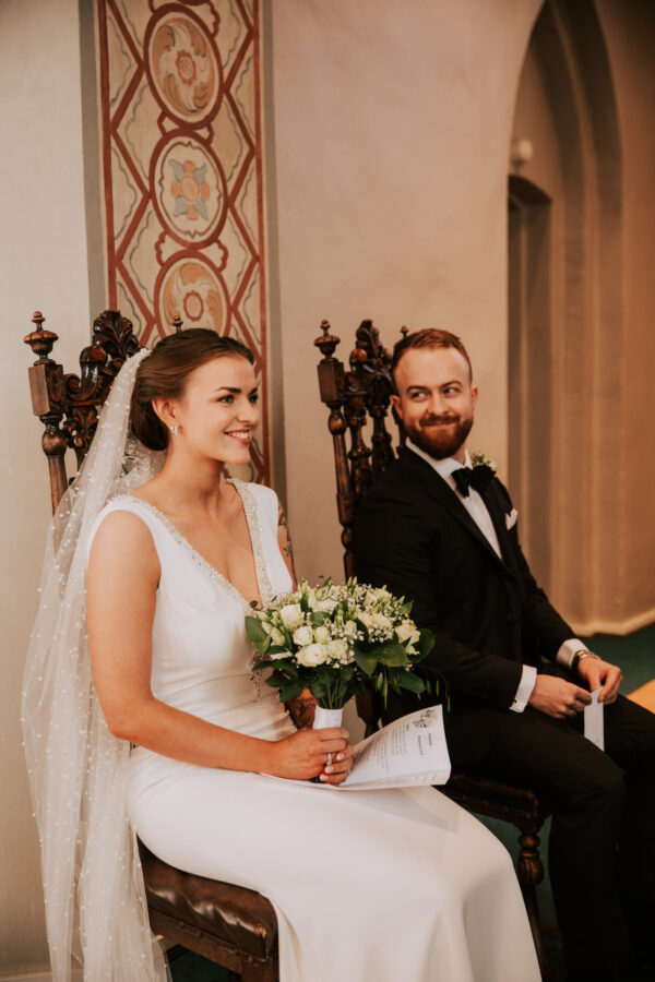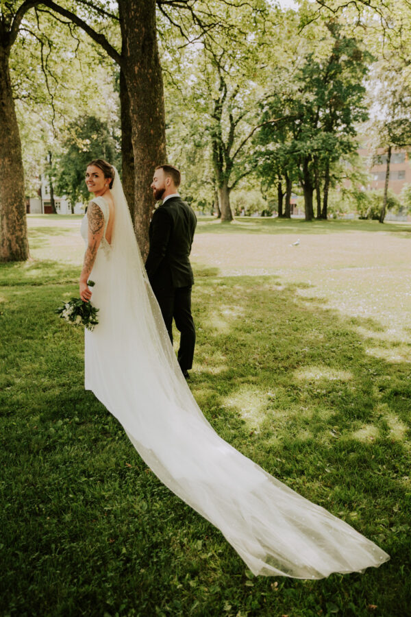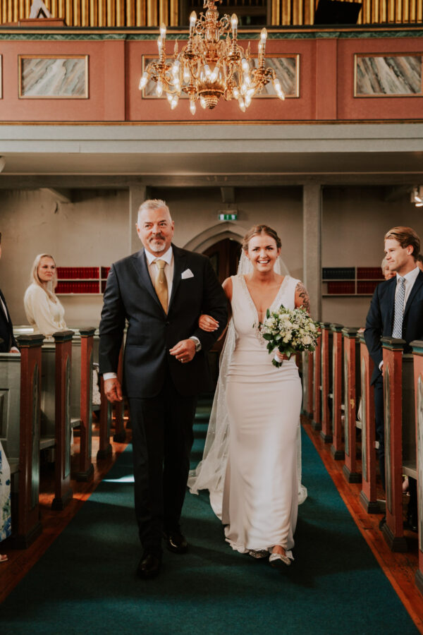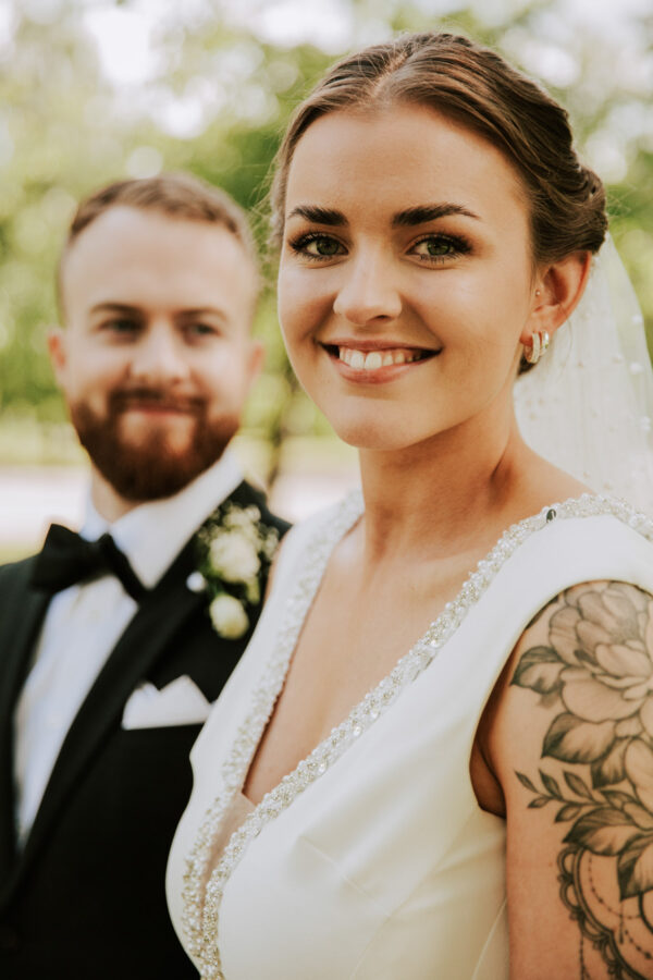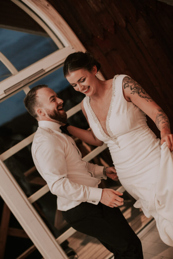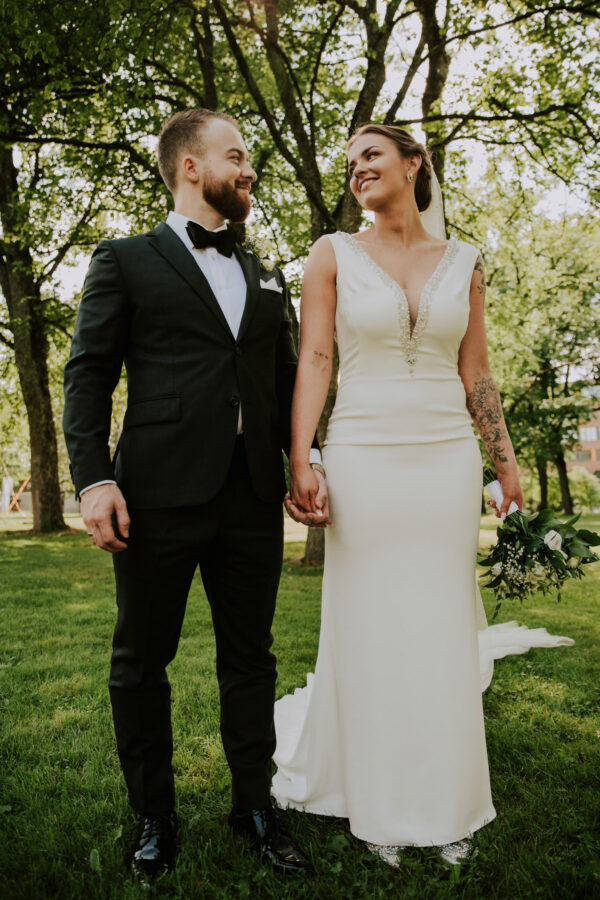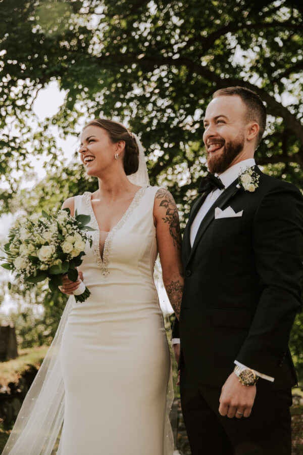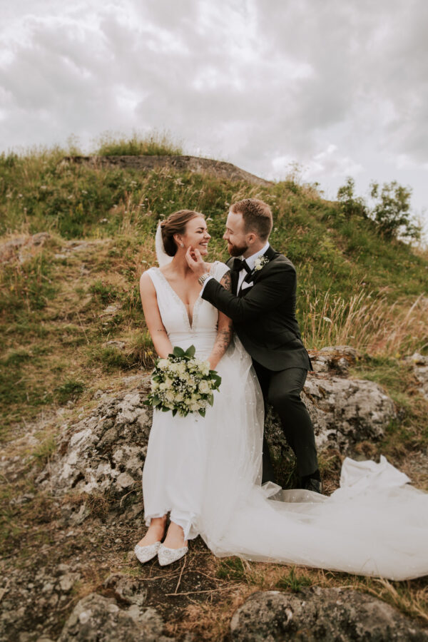 «Vi valgte pakken «Heldags Luksus», så vi møtte Martine først for en forlovelsesfotografering. Gjennom hele prosessen har vi hatt en god dialog, og planleggingsmøte i forkant av bryllupet. Vi ble godt kjent med hverandre, noe jeg tror hjelper med å fange de fine øyeblikkene. Martine er en utrolig varm og imøtekommende person, som var utrolig lett å samarbeide med. På bryllupsdagen var hun tilstede fra forberedelsene på morgenen til festen startet på kvelden. Hun fanget så mange fine øyeblikk, og bildene ble så utrolig fine. Dette gjelder både fra forlovelsesfotograferingen og bryllupet. Hun laget også en bryllupsvideo, som vi føler vi kan leve dagen om igjen av å se på. Vi synes bildene ser veldig naturlig ut og får virkelig frem følelsene våre.»