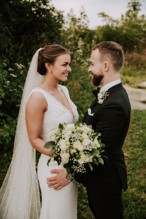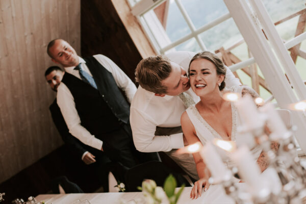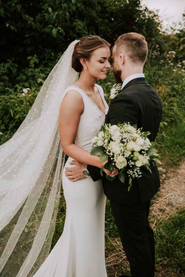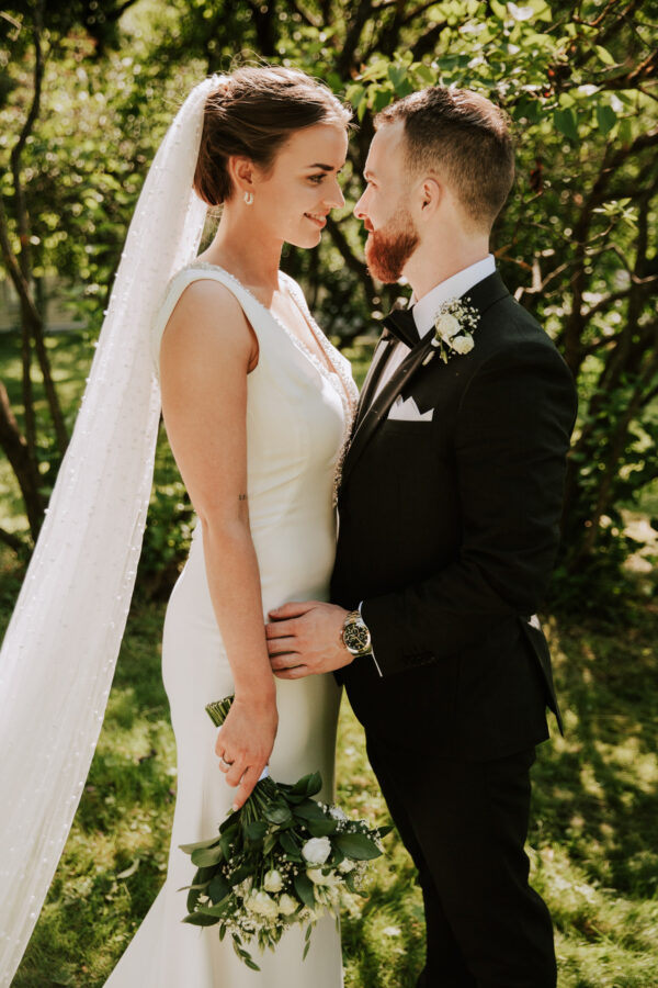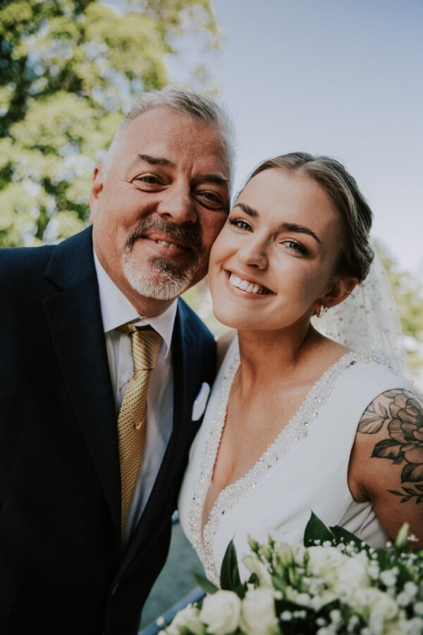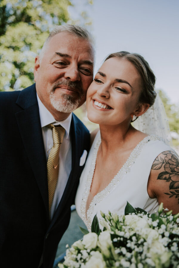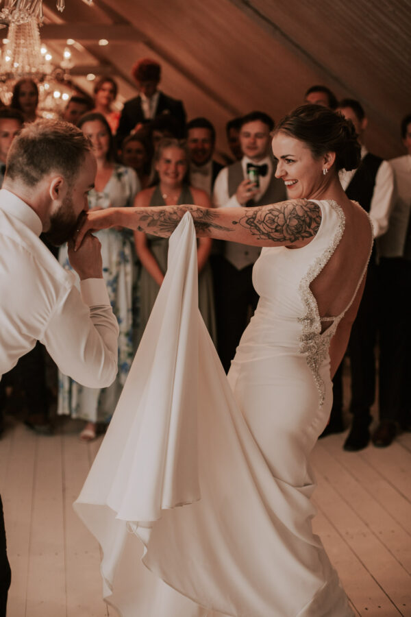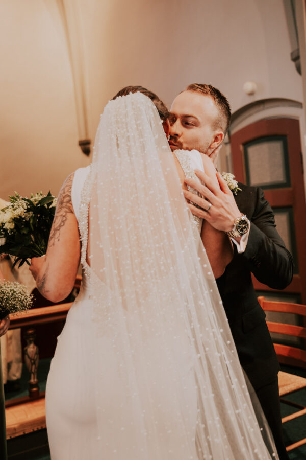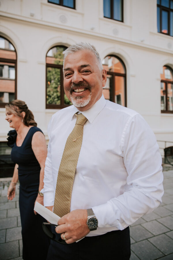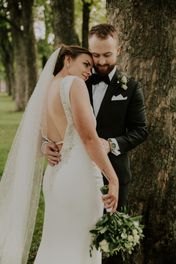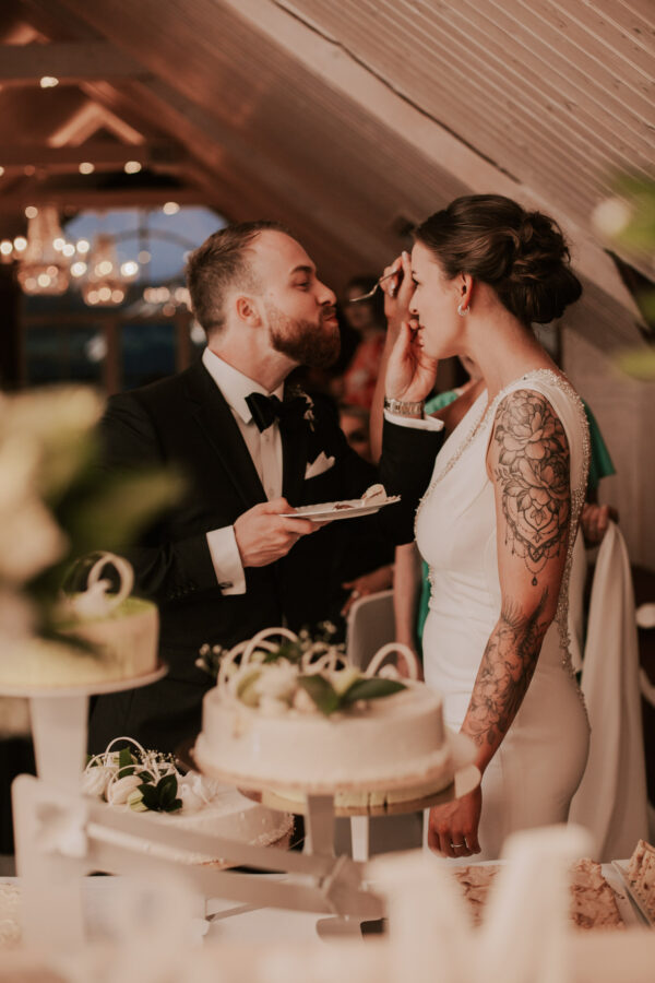 «Vi valgte pakken «Heldags Luksus», så vi møtte Martine først for en forlovelsesfotografering. Gjennom hele prosessen har vi hatt en god dialog, og planleggingsmøte i forkant av bryllupet. Vi ble godt kjent med hverandre, noe jeg tror hjelper med å fange de fine øyeblikkene. Martine er en utrolig varm og imøtekommende person, som var utrolig lett å samarbeide med. På bryllupsdagen var hun tilstede fra forberedelsene på morgenen til festen startet på kvelden. Hun fanget så mange fine øyeblikk, og bildene ble så utrolig fine. Dette gjelder både fra forlovelsesfotograferingen og bryllupet. Hun laget også en bryllupsvideo, som vi føler vi kan leve dagen om igjen av å se på. Vi synes bildene ser veldig naturlig ut og får virkelig frem følelsene våre.»