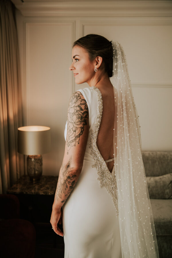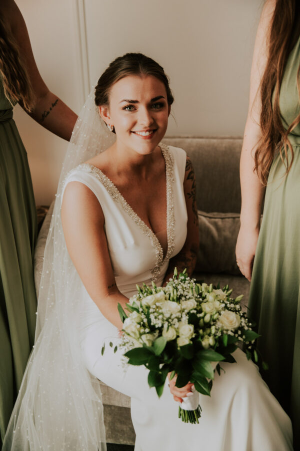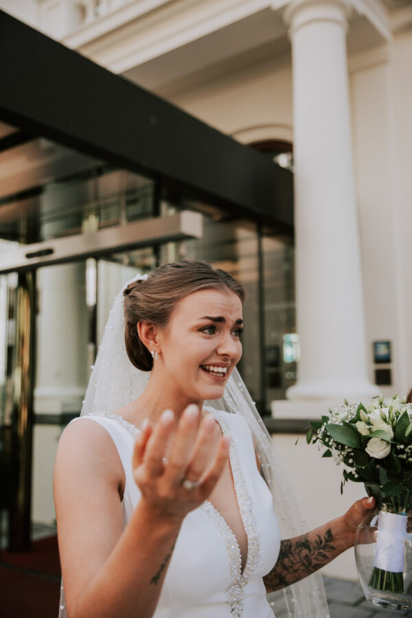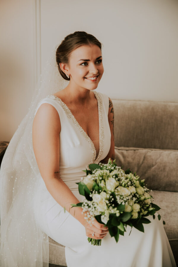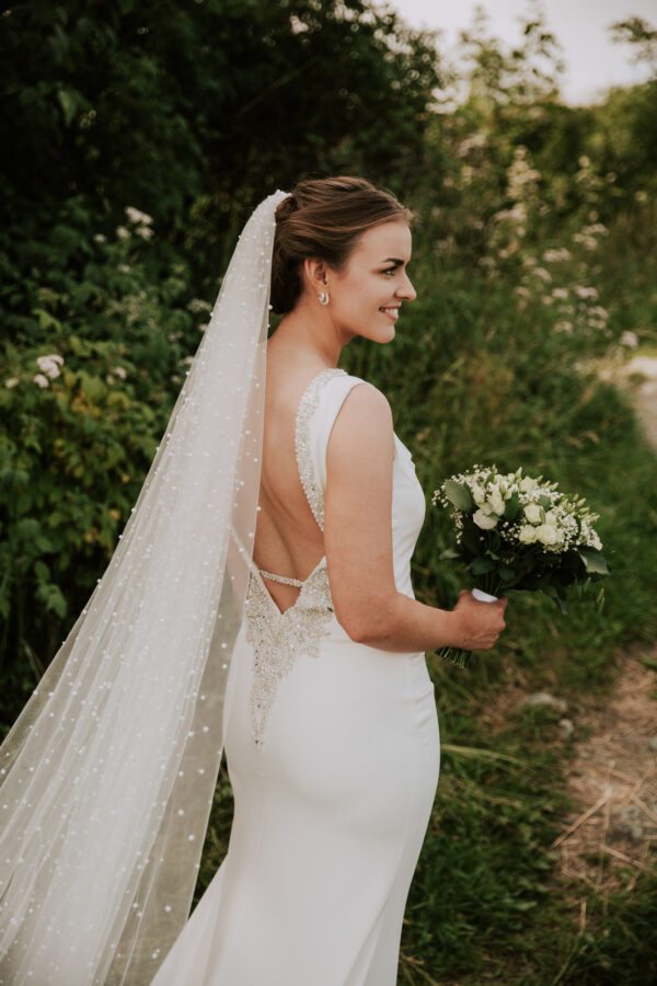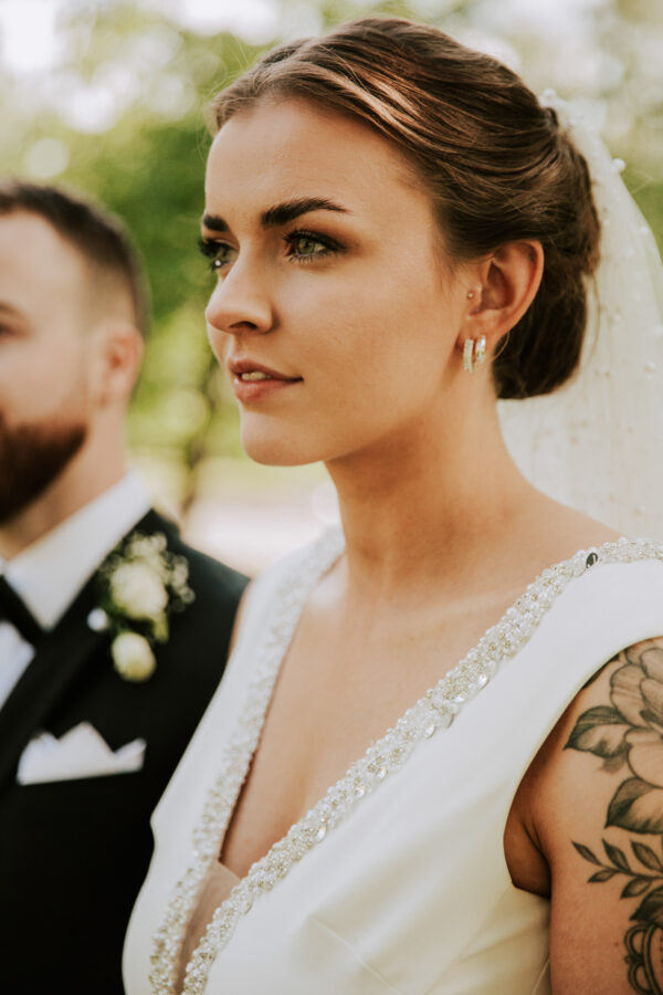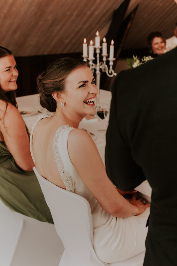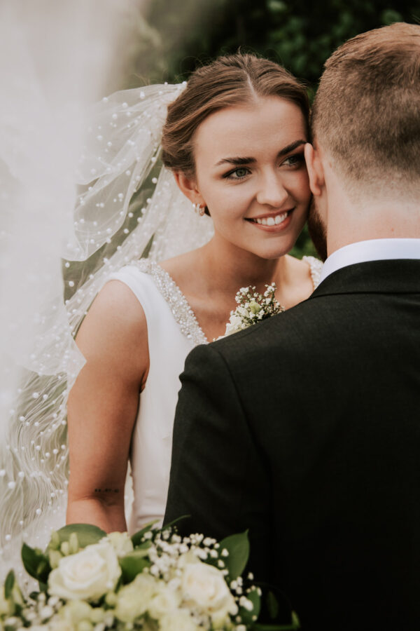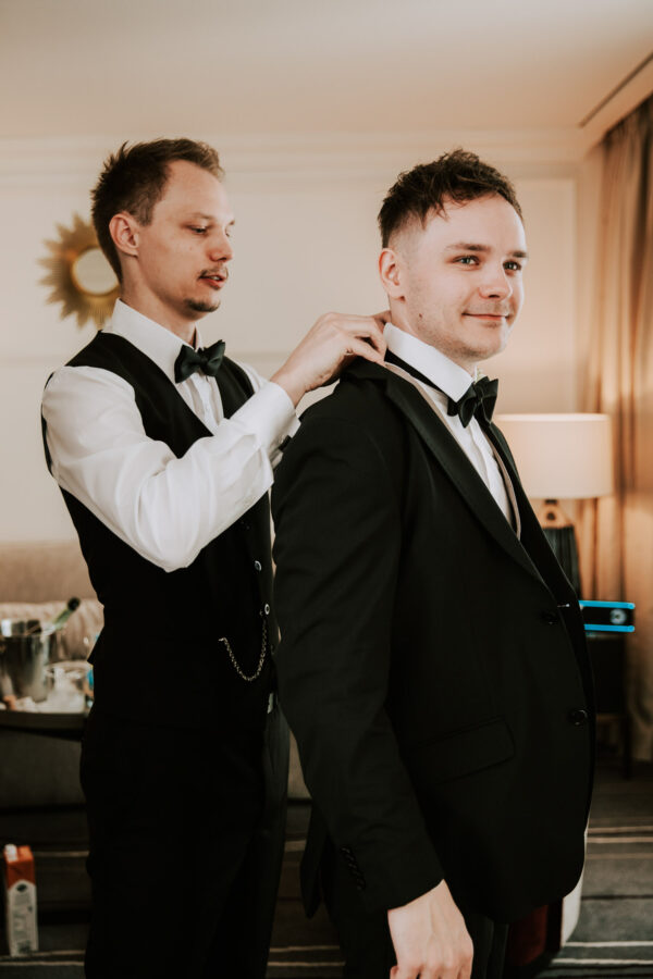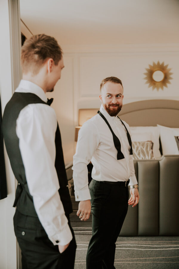 «Vi valgte pakken «Heldags Luksus», så vi møtte Martine først for en forlovelsesfotografering. Gjennom hele prosessen har vi hatt en god dialog, og planleggingsmøte i forkant av bryllupet. Vi ble godt kjent med hverandre, noe jeg tror hjelper med å fange de fine øyeblikkene. Martine er en utrolig varm og imøtekommende person, som var utrolig lett å samarbeide med. På bryllupsdagen var hun tilstede fra forberedelsene på morgenen til festen startet på kvelden. Hun fanget så mange fine øyeblikk, og bildene ble så utrolig fine. Dette gjelder både fra forlovelsesfotograferingen og bryllupet. Hun laget også en bryllupsvideo, som vi føler vi kan leve dagen om igjen av å se på. Vi synes bildene ser veldig naturlig ut og får virkelig frem følelsene våre.»
